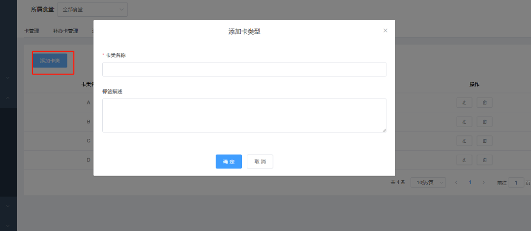 ①點擊“添加卡類”按鈕,系統彈出添加卡類型頁面;