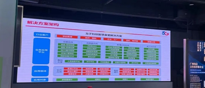 作為中國電信廣州分公司合作伙伴,戈子科技攜5G+智慧食堂產(chǎn)品體系、5G+智慧食堂解決方案等亮相會議展區(qū),戈子科技陳總受邀以《5G+智慧食堂解決方案》為題發(fā)表演講。