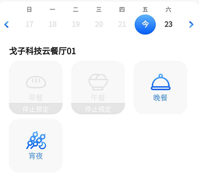 ③當餐別顯示“停止預定”時,用戶無法在進行預訂。