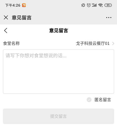 首頁點擊“意見留言”圖標,進入意見留言頁面