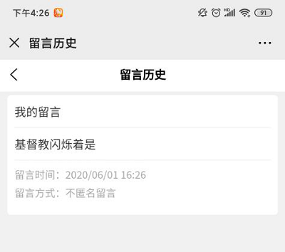點擊“留言歷史”可查看自己的歷史留言